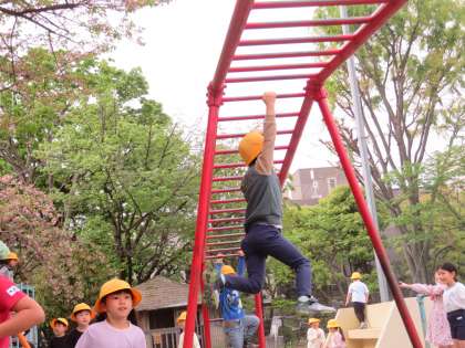 まだまだ遠慮気味なところもありますが、笑顔で校庭で遊びはじめました。