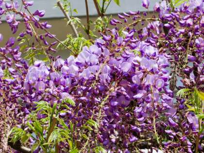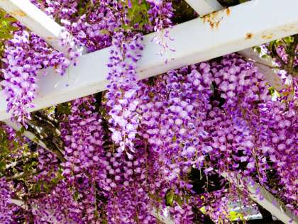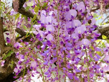 校長室前の藤棚です。藤の花が美しく咲いています!