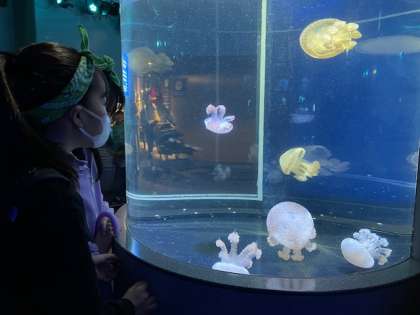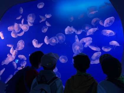 クラゲのコーナーです。子どもたちは、ふわふわと漂うクラゲの姿に癒されていました!