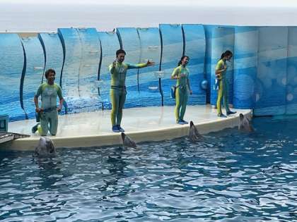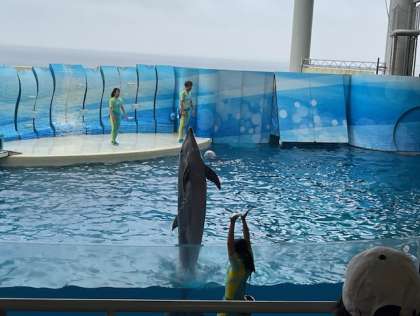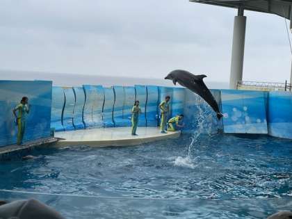 大切に育てられている、イルカの迫力あるパフォーマンスを見ることができました。子どもたちは、はじまる前からどきどきわくわくです!