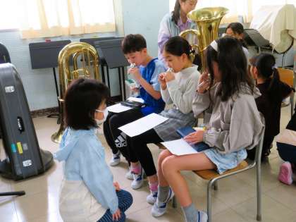 金管バンドは、本日から「4年生の体験入部」がはじまりました。5,6年生は張り切って4年生をお迎えしています。