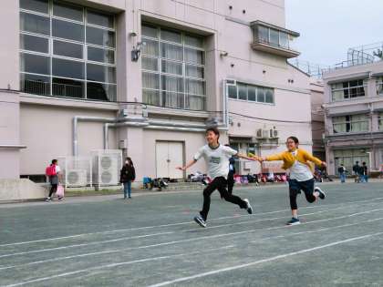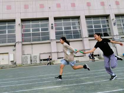 バトンを右手で持って走り、左手でもらう練習を何度も繰り返していました。