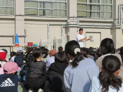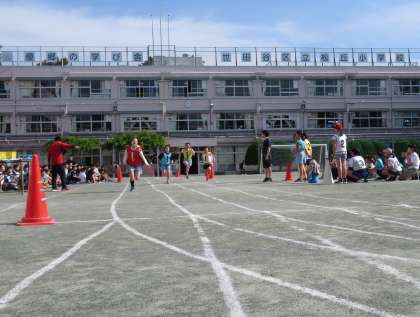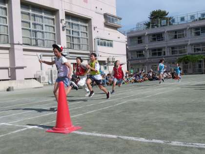 高学年リレーは、走る順番などはまだ決まっていませんが、今日現在の記録を計測しました。今後、どれだけタイムが速くなっていくかが楽しみです。中学年リレーのお手本としても走りました。