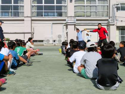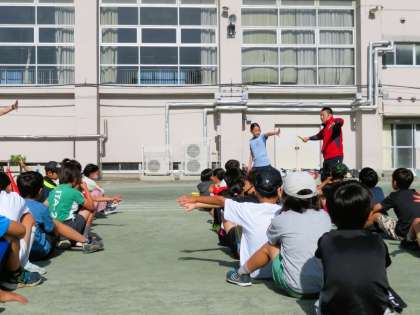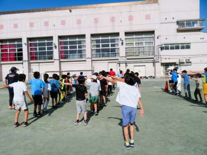 男女混合中学年リレーの朝練習は、本格的にバトンパスの練習がスタートしています。バトンを前走者の右手から、左手でもらう練習を何度も繰り返しています。