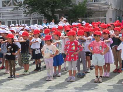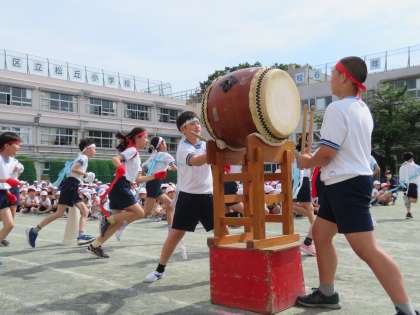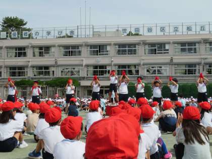今日の体育朝会は午前の部の応援練習です。応援団は全校の子どもたちの前にデビューです。応援団は運動会を盛り上げる花形です。