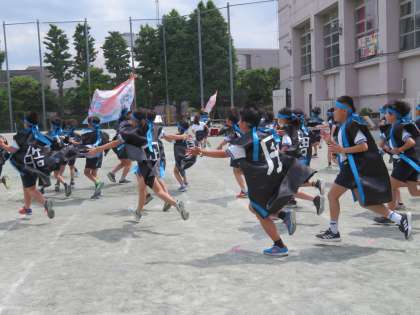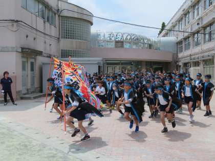 5年生の表現は『奏爛2024』です。伝統の「南中ソーラン節」を鈴の音を奏でながら、157人が力強く躍ります。