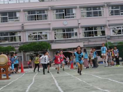 写真は、中学年リレーの様子です。
