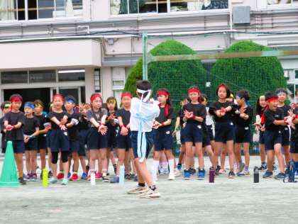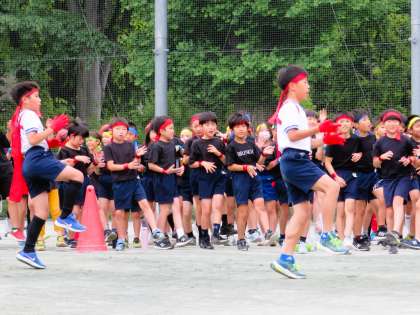 応援団のお手本ダンスを見ながら、軽快な音楽にからだを揺らしながら上手に踊っています!