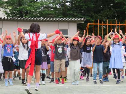 全校の子どもたちで、「ボンファイヤーダンス」を踊って盛り上がります!
