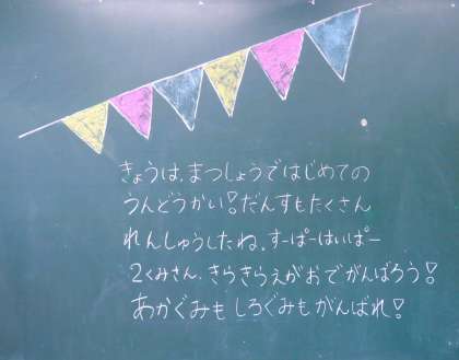 写真は、1年生の黒板です。