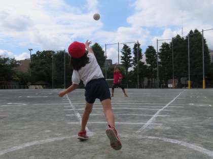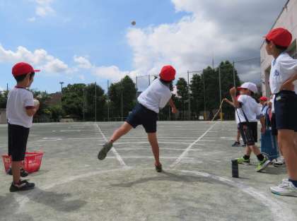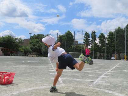 写真は、1年生「ハンドボール投げ」の様子です。