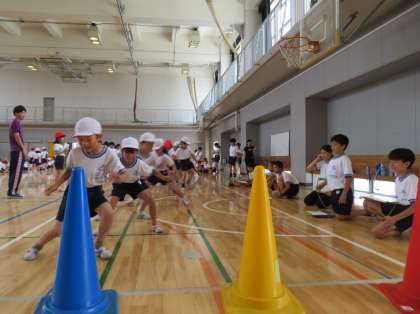今日は2年生も体力テストで、測定種目は「反復横跳び」「上体起こし」「立ち幅跳び」「長座体前屈」「ソフトボール投げ」「20メートルシャトルラン」「握力」「50メートル走」の8種目です。本日は5種目を実施しました。