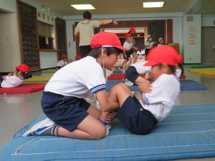 写真は、2年生「上体起こし」の様子です。