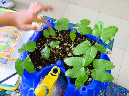 授業の様子をお届けします。6月に入り1学期も中盤に差し掛かっています。1年生が育てているアサガオの芽が、勢いよく出てきました。