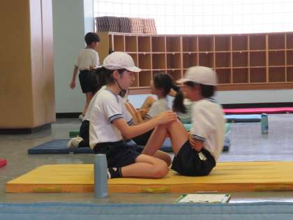 写真は、6年生「上体起こし」「ハンドボール投げ」の様子です。