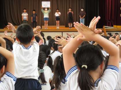 委員会の発表が終わると、子どもたちから自然と拍手が沸き起こります。温かく素敵な雰囲気でした。