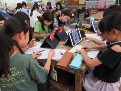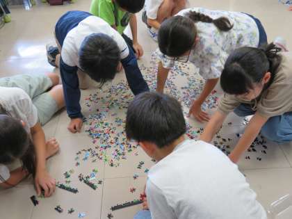 写真は、美術、パズル、歴史研究クラブの様子です。