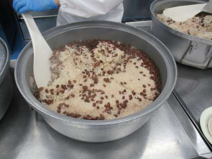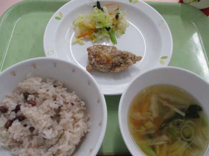 明日は「松丘小学校69回目の開校記念、お祝い給食」です。みなさんに人気のあるメニューとお赤飯にしましたお赤飯は、おめでたい行事の時に食べると良い事があるそうです。みんなで一緒にお祝いしましょう。