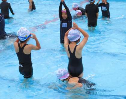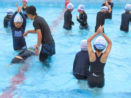 『水中ジャンケン』などで、水遊びを楽しみました。
