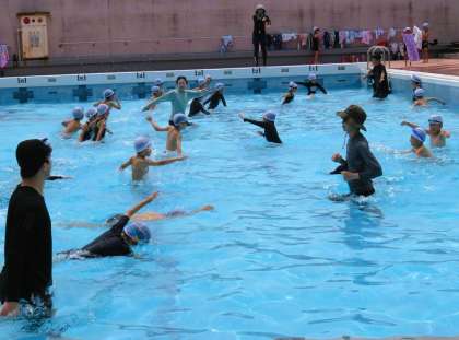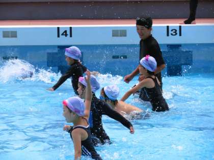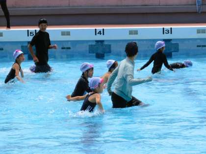 先生と一緒に歩いたり走ったりして、水の中で体を動かしました!