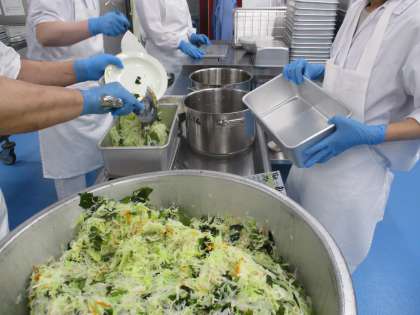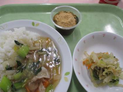 今日は「海藻サラダ」です。きゃべつ・白菜・人参・切り干し大根・わかめ・糸寒天を使用して作っています。糸寒天やわかめにはミネラルや食物繊維が含まれています。身体に良い食物です、美味しくいただけるといいですね。