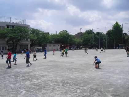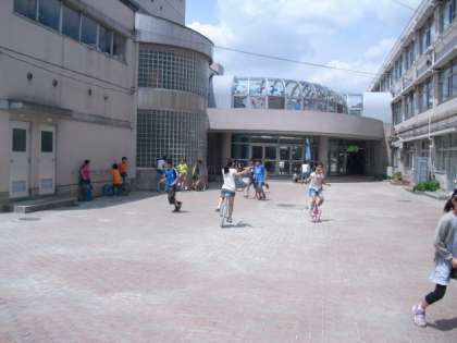 広い校庭ではありませんが、子どもたちは休み時間には思い切り体を動かしています。3年生は一輪車を上手に乗りこなし、「先生。見て」と声をかけてくれます。校庭の中ほどでは、走り回る子ども、ドッジボールする子ども、などなど様々な遊びをしています。