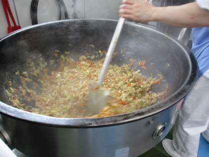 今日は「回釜肉丼」です。豚肉・人参・にんにく・しょうが・キャベツ・ピーマン・ねぎ・しいたけを使用して作っています。中華料理のひとつです。美味しくいただけるといいですね。