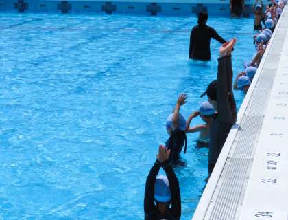泳ぎの基本となる、「浮く」という感覚を身に付けていきます。