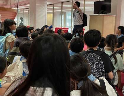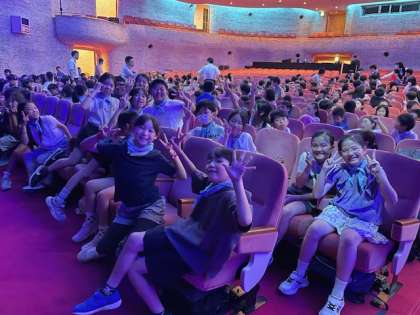 座席は3階席まである中、恵まれたことに1階の真ん中1列目からで、演技をしている役者さんの表情はもちろん、息遣いや汗まで感じることができました。上演中の撮影はできませんでしたが、迫力ある演技や美しい歌声に感動でした。子どもたちとともに、私も涙、涙でした。