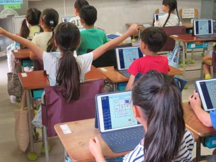 1年生もiPadを使っているクラスがあります。早くも「リーチ!」、そして「ビンゴ!」と、あがった子が出てきました!