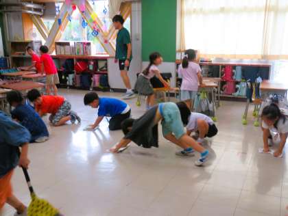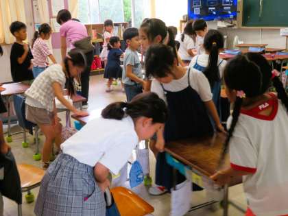 松丘小学校の特色の一つとして、毎日の『自問清掃』に取り組んでいます。今年度の重点目標の一つとしての実践ですが、自らに問いかけながら、3つの心を磨いています。