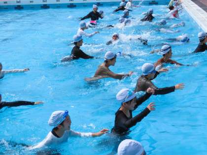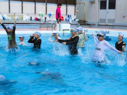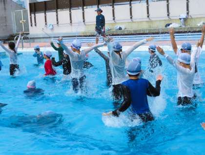 子どもたちは着衣をしたまま、いつものウォーミングアップです!