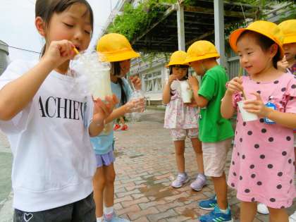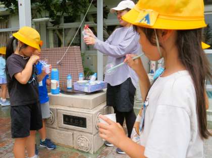 1年生は、生活科「なつをたのしもう」の学習でシャボン玉遊びをしました。よいお天気の中で、校庭で思いっきりシャボン玉遊びをすることができました。