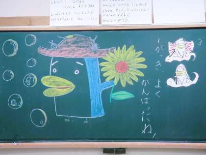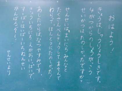 朝、子どもたちが登校してくると、担任の先生からのメッセージが黒板に!