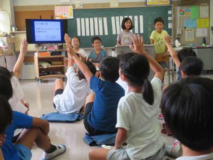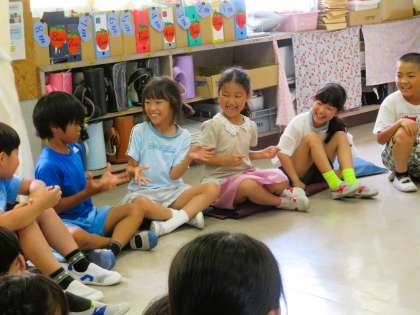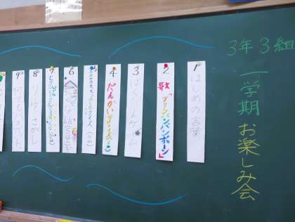 がんばった自分たちへのご褒美として、小学校には『お楽しみ会』という文化があります。学級会でめあて(目標)を決めて、内容を検討します。教室では、お笑いやマジック、宝探し、クイズ、室内ゲームなどを行います。体育館や校庭ではボールを使った遊びや鬼ごっこなどが行われます。
