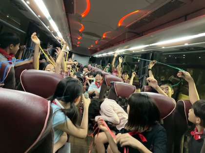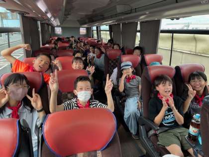 羽生パーキングに着きました。高速道路は順調で、バスレクを楽しみながら、あっという間にパーキング到着です。バス車内は、感染症対策として、プラズマクラスター搭載、5分で車内全体が新しい空気に入れ替わる「外気導入運転」を実施しています。天候は晴れです。この後、大谷資料館に向かいます。
