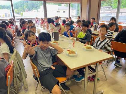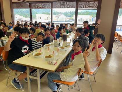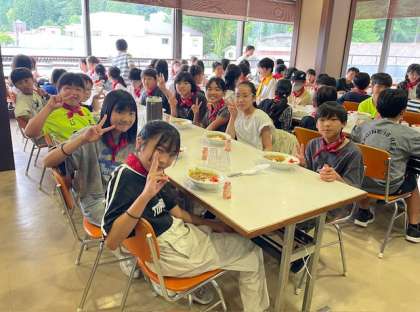 富士屋観光センターで、昼食のカレーライスを食べました。子どもたちは食欲旺盛で元気です。この後、日光東照宮へと向かいます。