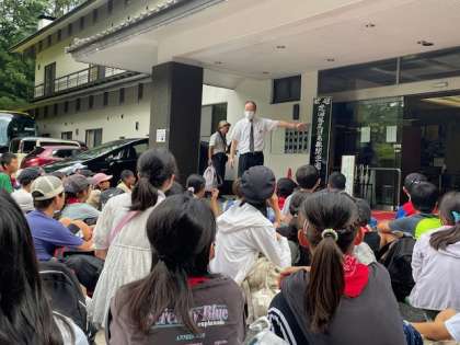 ホテル青晃苑、ホテル東観荘に到着し、それぞれ開園式を行いました。開園式での姿勢も立派です。