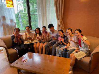 私も子どもたちと久しぶりのトランプで、楽しいひと時を過ごしました。部屋の左側にはお化けが写っています(笑)
