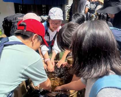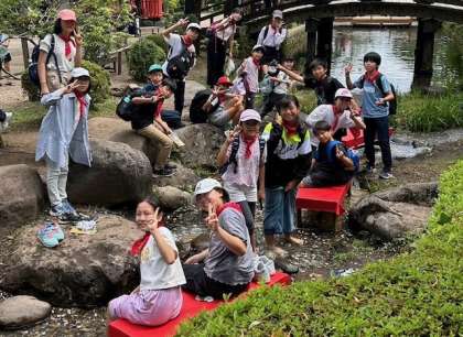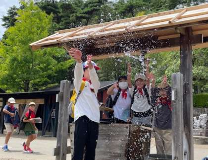 子どもたちは涼を求めて、暑さを凌ぎながら上手に楽しんでいます!