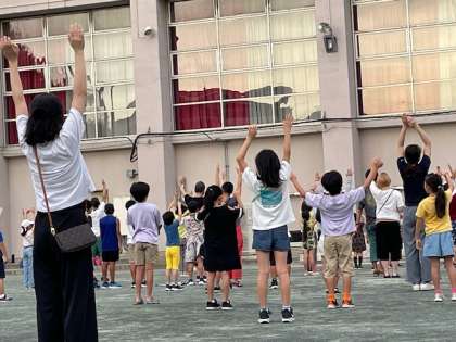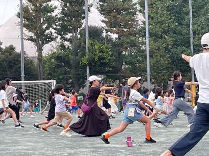 世田谷区ラジオ体操連盟の先生をお手本に、一生懸命取り組んでいました。ゲームも取り入れていただき、子どもたちは楽しそうです!