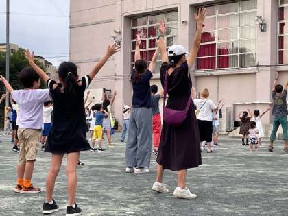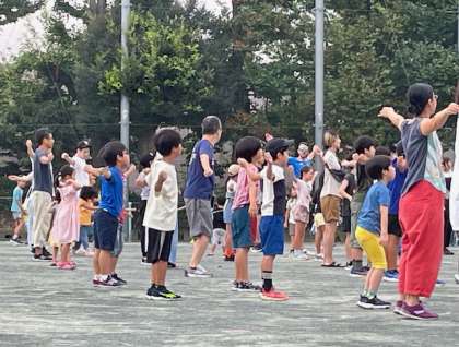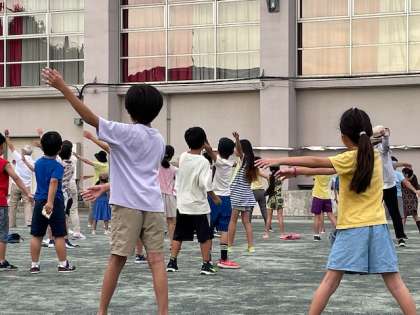 ラジオ体操は、一生懸命に行うとかなりの運動量になります。子どもも大人もよく頑張りました!