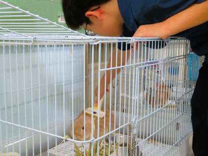 夏休み中も毎日のように飼育委員の子どもたちが、ウサギのモカとラテのお世話をしてくれていました。水や干し草、ウサギの餌を与え、小屋の掃除、お散歩、そしてウサギの健康状態も記録して引き継いでくれました。