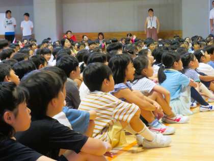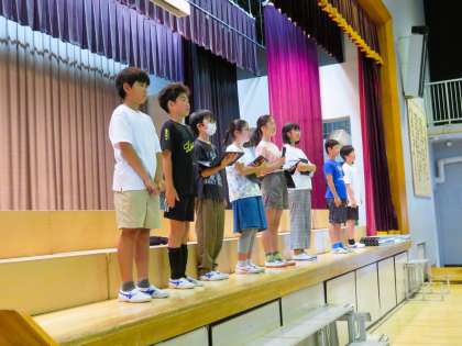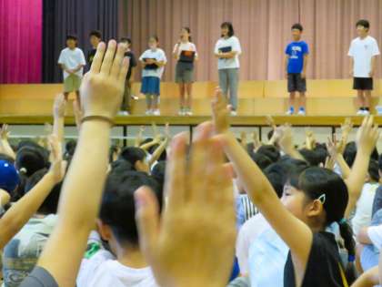 今日の児童集会は集会委員の皆さんによる「防災クイズ集会」です。関東大震災に関するクイズなど、全校の子どもたちがわかりやすいクイズから難問クイズまで、どの子も楽しめるよう工夫されていました。