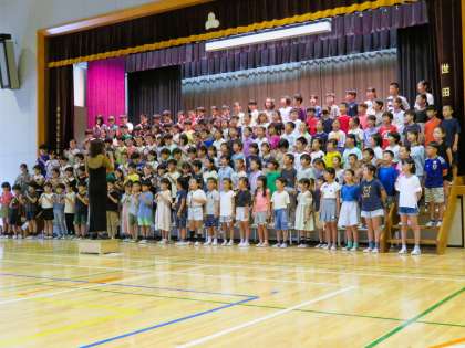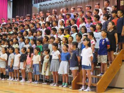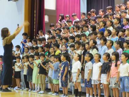 3年生は明日の「音楽朝会」に向けて、今日はリハーサルです。明日を成功させるために最後の仕上げを行いました。