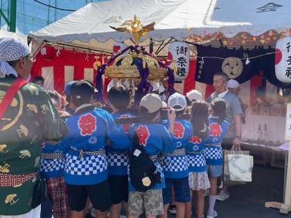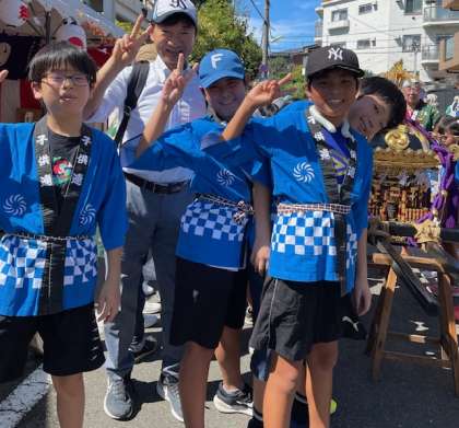 10時から神輿と太鼓の巡業が出発しました。「わっしょい!わっしょい!」と、盛り上がりました!