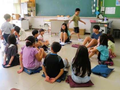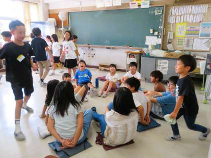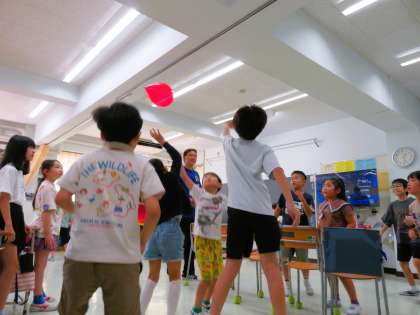 「ハンカチ落とし」「風船バレー」で遊んでいる班の様子です!