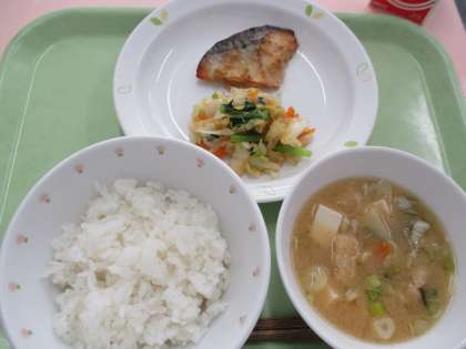今日は「さばのみそ焼き」です。味噌に漬け込み。オーブンで焼いています。野菜は辛し和えです。さばと一緒に美味しくいただけるといいですね。