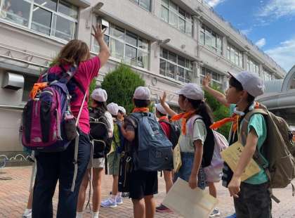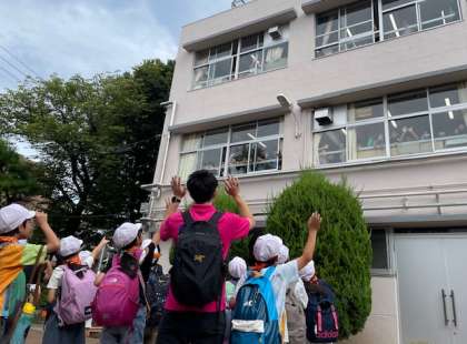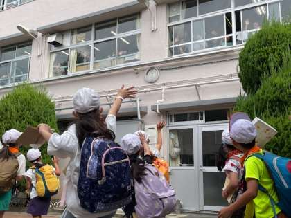 3年生が出発するときに、6年生が「いってらっしゃーい!」と、温かく手を振って見送ってくれました。6年生の気持ちが表れていて、3年生も私たちも嬉しい気持ちでいっぱいになりました。本当に温かい子どもたちと先生の学校です。