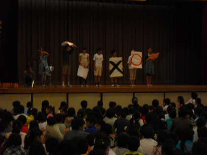 1時間目は、開校記念集会です。企画・代表委員会の運営で、開校記念を祝う集会をしました。世田谷ニュースでは、リポーターが10年前の学校の様子をインタビューするという設定で楽しいレポートができました。また、学校のクイズにもみんなで参加しました。そのあとは、縦割り班活動です。縦割り班で、学校のよいところとめざす学校について話し合いました。どの班も真剣に考え、よい話し合いができました。
